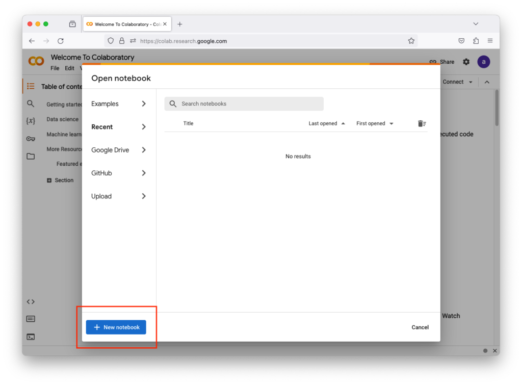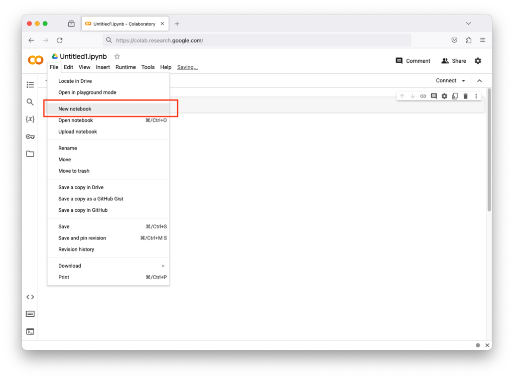 After logging in, go to New Notebook or go to File, then New Notebook.