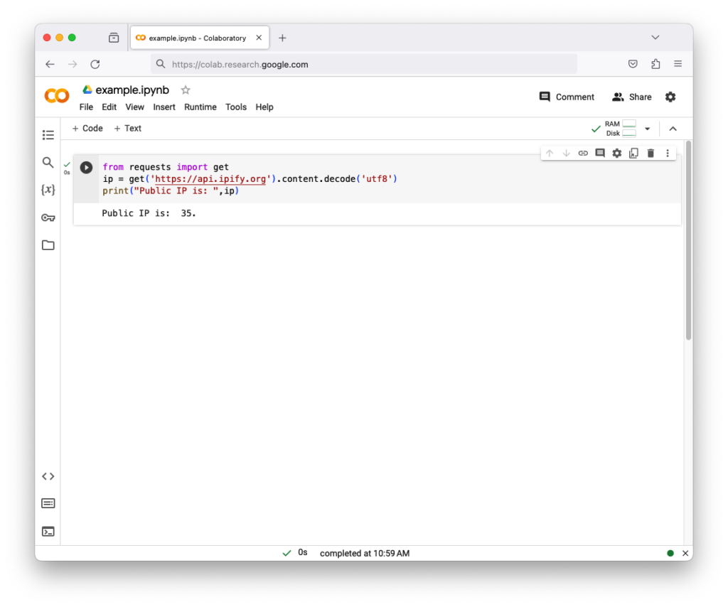 ip = get('https://api.ipify.org').content.decode('utf8')