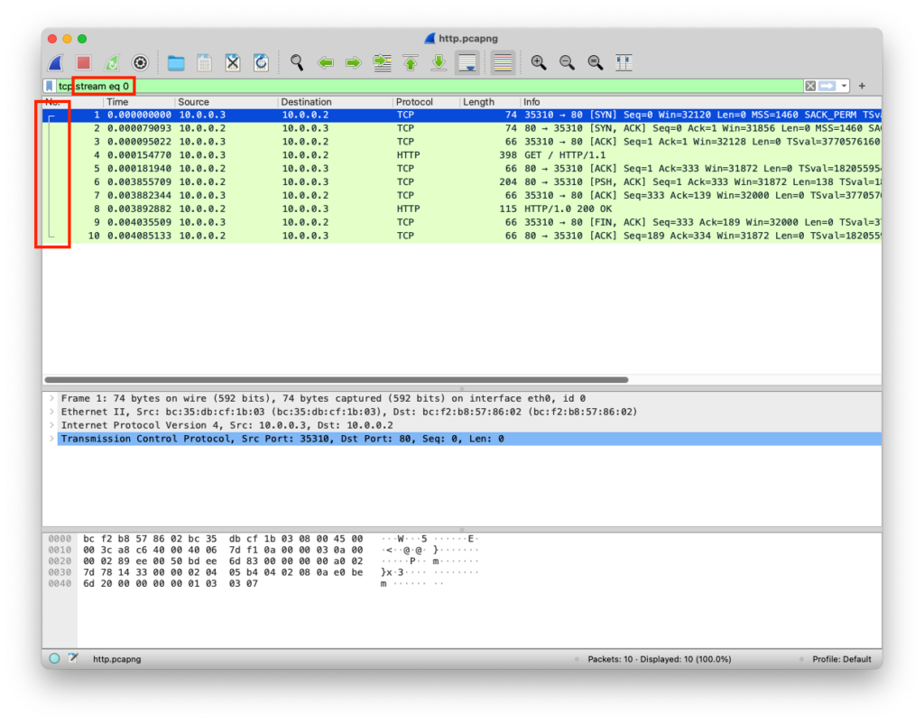 | Application Layer | HTTP | Data | GET / HTTP/1.1 Host: 10.0.0.2 User-Agent: Mozilla/5.0 (X11; Linux x86_64; rv:109.0) Gecko/20100101 Firefox/115.0 Accept: text/html,application/xhtml+xml,application/xml;q=0.9,image/avif,image/webp,*/*;q=0.8 Accept-Language: en-US,en;q=0.5 Accept-Encoding: gzip, deflate Connection: keep-alive Upgrade-Insecure-Requests: 1 |